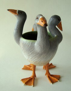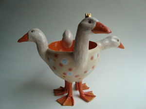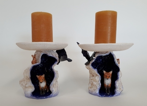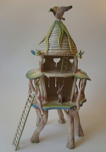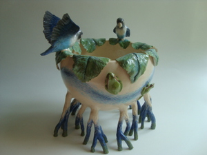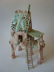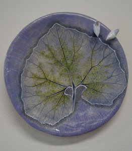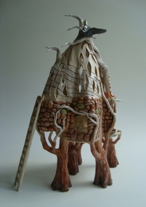 2022Een miniatuur van porselein. Met takjes en herfstblaadjes van gevilte wol.