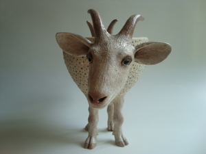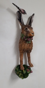 2022Beestjes aan de wand, waaronder deze haas, is een eerbetoon aan de dieren om ons heen. Allen hebben een krans van bloemen en bladeren om, omdat ik ze zo prachtig vind. Ook een vogel vergezelt elke dierenhoofd. Want alles is een, in verscheidenheid.