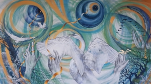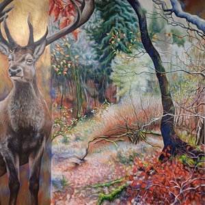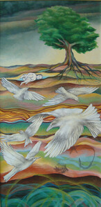 Schilderijen in gecombineerde techniek.